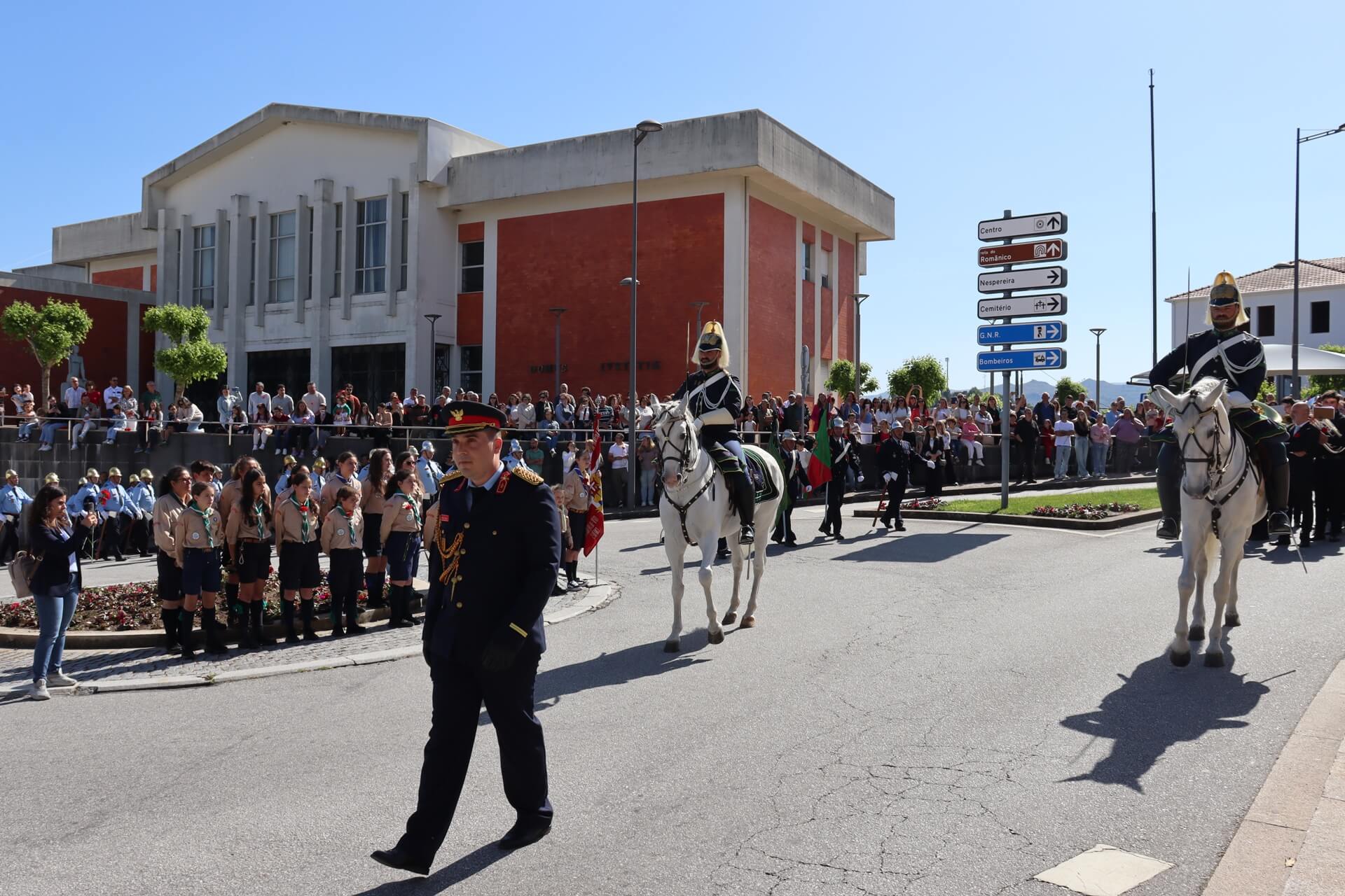 As comemorações tiveram início junto aos Paços do Concelho, com uma cerimónia solene que integrou uma guarda de honra composta por uma Força a Cavalo da GNR e pela formatura dos Bombeiros Voluntários de Cinfães e de Nespereira. O momento foi acompanhado pela interpretação da marcha “25 de Abril”, pela Orquestra de Sopros e Coro da Academia de Artes de Cinfães, criando um ambiente de respeito e evocação histórica.