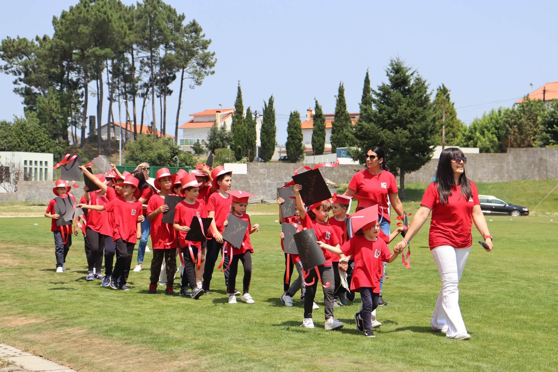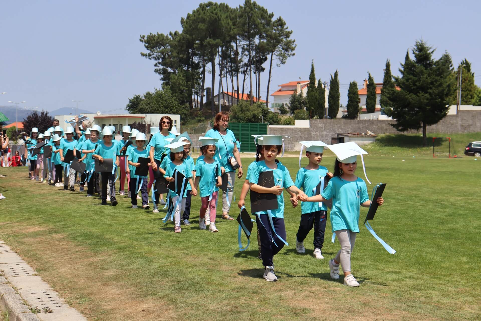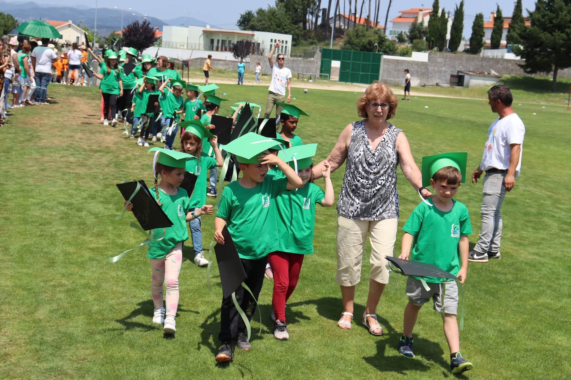 À chegada, os mais novos tinham à sua espera vários insufláveis, matraquilhos, jogos de futebol e de voleibol, xadrez, música, dança e muita animação. Mas o ponto alto da festa foi o desfile dos alunos finalistas do 1º Ciclo e do Jardim-de-Infância. De cartolas e pastas com fitas coloridas desfilaram, orgulhosamente, pelo relvado dando um colorido diferente e muito especial ao Estádio Municipal. Um momento partilhado com os pais e encarregados de educação que marcaram presença em grande número.