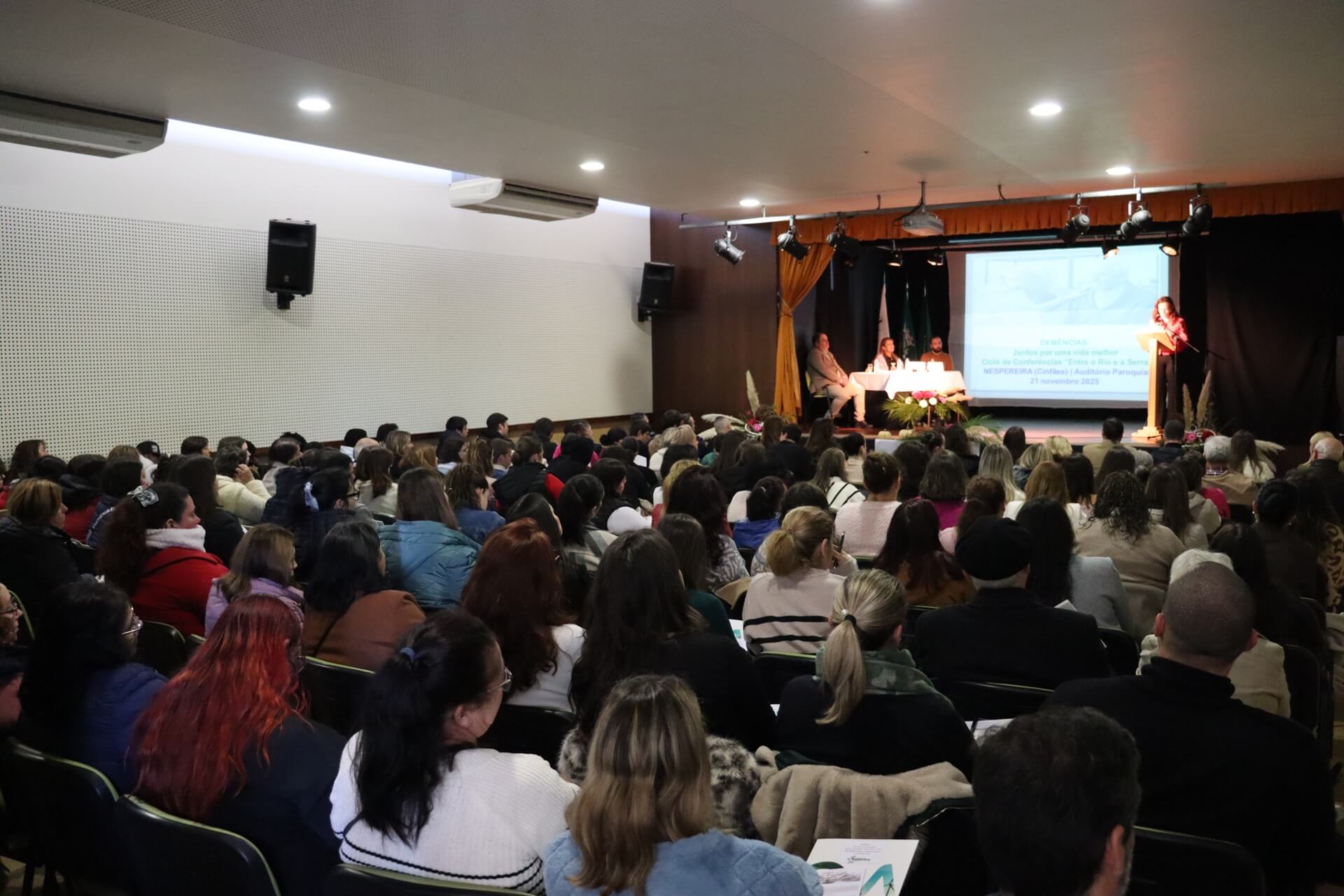 O evento realizou-se no Auditório Paroquial de Nespereira e reuniu especialistas de várias áreas ligadas à saúde, intervenção social e envelhecimento. O programa integrou diversas comunicações, abordando o impacto do uso digital na memória, o papel das crianças na vida de uma pessoa com demência, os desafios do cuidado à pessoa idosa e uma sessão prática de relaxamento. Participaram também o Presidente da Direção da A.S.S.R. Nespereira, Luís Leitão, o Presidente da Junta de Freguesia de Nespereira, André Ribeiro, e representantes da Segurança Social.